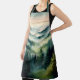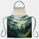 Earthy, even masculine apron for men and women, featuring pine trees lining the mountains as far as the eye can see with early morning fog tickling the valley in earthy hues only Mother Nature can provide.