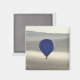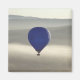 Hot air balloon floating over the mist covered Dordogne landscape at sunrise