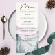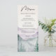 Present your wedding meal in style with this elegant, nature-inspired menu. The beautiful watercolor design features a misty mountain and forest landscape, creating a sophisticated backdrop for your culinary selections. Easily customize the menu with your chosen dishes. A perfect complement to your rustic or outdoor wedding theme.