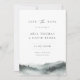 Elegant watercolor misty mountain forest scene, wedding save the date card. Features, single photo backing on coordinating black background.