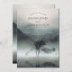 Misty Mountain Tree Silhouette Wedding Invitation. This romantic invitation features a solitary tree set against misty blue-green mountain layers, blending rustic elegance with minimalist style. Ideal for woodland weddings, nature elopements, or moody outdoor ceremonies with an atmospheric feel.