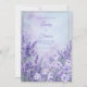 Capture the ethereal essence of a sun-drenched meadow with this dreamy botanical layout. The design features a lush foreground of vibrant purple lavender stalks on the left, transitioning into soft periwinkle and lilac blossoms with delicate yellow centers on the right. A sophisticated thin gold double-line rectangular frame provides a structured anchor for your wording, set against a stunning misty blue and violet bokeh background. The soft-focus textures and tranquil pastel palette create a high-end, fine-art garden feel that is both timeless and deeply romantic. This botanical scene is a premier choice for a romantic spring garden ceremony or a whimsical outdoor summer wedding. The soothing periwinkle and purple color story makes it a flawless fit for a refined bridal shower, a sophisticated engagement party, or an intimate vineyard reception. It pairs beautifully with motifs like modern organic, French provincial, or fine-art botanical, and coordinates perfectly with gold metallic accents, white linen textures, and dusty lavender decor.
