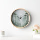 Atmospheric pine forest wall clock in green and grey watercolor tones. A calm and natural design for modern interiors
