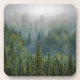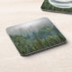 Misty pine trees forest landscape beverage coaster
