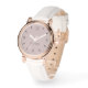 This pretty watch featured in rose gold has a Misty Pink solid color face and the ability to add a custom name. Click "Personalize this Template" to easily change or remove the featured sample name.