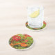 I'm not sure how much moisture these will soak up, haven't had a chance to try them out, but they look good and I like the cork backing. The printing is fine ~ and really looks cool with an artisan's hand made "Hurricane Martini" glass sitting on top of my painting (on the coaster) in my studio.