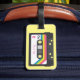 This fun luggage tag features a neon rainbow cassette tape that can be personalized on both sides! The colors really pop on your bag!