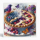 A warm and whimsical illustration of a freshly baked mixed berry pie topped with blueberries and raspberries, surrounded by fruit, butterflies, and birds. Steam rises from the golden crust, adding a cozy, homemade feeling to this richly detailed and colorful scene.