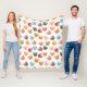 This fleece blanket has a Boho design of flowers in mixed colors scattered about the design.