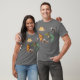 My 11 yo wore adult XL (5’7” 165#). The 8yo is small framed. She wore adult small and tied it in the back. Grandma wore adult large with long sleeve shirt underneath. Tall girl adult medium. Dark haired male adult large. Good quality dark Heather gray, Gildan brand shirt. -it was next up from basic choice and cost about $20 per shirt. Not too thick or thin. Washed and dried well, no major shrinkage. Not see-through. Can wear a bra under it fine. Screen print is just as shown and well done, front and back.