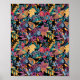 Mixed Fall Floral Leaves Berry Watercolor Pattern Poster