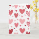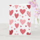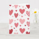 This card shows a white background covered with lots of hearts in different sizes, with some cut off at the edges like the pattern keeps going. The hearts come in deep red, light pink, and coral, giving the whole card a sweet, romantic feel 💘. Many hearts have small details inside them, like tiny hearts, little “x” marks, and star shapes. A few also have simple stripes, so the pattern doesn’t feel the same all the way through. The hearts look soft and slightly uneven around the edges, like they were drawn with care rather than made by a machine. There isn’t any text shown on the front in this image, so the hearts are the main focus ❤️. It’s a warm choice for a partner, friend, or anyone you want to treat with kindness 😘, and it ends up being an easy way to share Valentine’s Day sentiments.