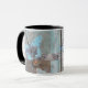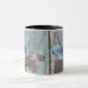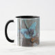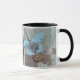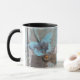 Butterfly dreams mixed media art shown on classic white mug. Soft blues and creams with a butterfly metal cutout and dream stamped heart. The artwork was made by using a combination of any and all of the following: stamps, acrylic paints, inks, fabric, paper, findings and more. Jenn's Emporium