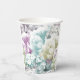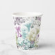 A soft mixed pastel bouquet of various flowers. Pink, aqua and cream colors accent this pretty paper cup.