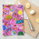 Mixed pickleball doodle on pink. Perfect as a gift for pickleball player. kitchen towel with pink pickleball motif