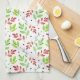 Mixed Red, Green Watercolor Leaves Pattern Kitchen Towel