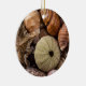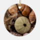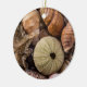 Decorative ceramic ornament with image of mixed sea shells on both sides.