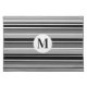 Mixed striped pattern in black, white and grays. With initial/letter encircled center to personalize.