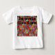 This baby t-shirt has an art deco design of tulips from pentagons and trapezoids in orange, red, purple, gold, and green.