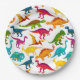 Mixture of Colorful Dinosaurs in Black Canvas Paper Plates