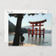 Postcard of the Itsukushima Shrine, Miyajima, Japan with deer in foreground.