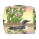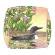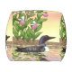 The Minnesota official state bird, the common loon, and the state flower, the pink lady slipper.