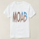 This shirt celebrates the red rock outdoor recreation heaven that is Moab, Utah with letters filled with a photograph of red rocks and blue sky.