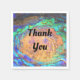 Are you hosting an appreciation party for customers, employees, or classroom teachers? These abstract appreciation napkins feature a bright mosaic pattern the captures the unique coloring and pattern of a polished abalone shell. The vibrant orange, teal, and purple colored tiles gives these paper napkins a cosmic look as the colors arc and blend together. "Thank You" appears in the center and can easily be customized to suit your needs.