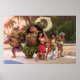 This vibrant and cheerful image from the world of Moana showcases a gathering of beloved characters, each bringing their own unique flavor to the adventure. Maui, with his mischievous grin and legendary fishhook, stands proudly beside Moana, who crosses her arms with a confident, playful smirk. Joining them is Moni, motioning towards Maui; Lota, full of excitement; Kele, arms crossed; Kotu the Kakamora; the energetic and slightly zany Heihei the rooster; and the always adorable Pua the pig. The image captures the essence of teamwork that are central to their story. Each character is depicted in great detail, from their expressive faces to their culturally rich attire, representing the spirit of unity and adventure that defines their journey.