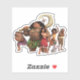 This vibrant and cheerful image from the world of Moana showcases a gathering of beloved characters, each bringing their own unique flavor to the adventure. Maui, with his mischievous grin and legendary fishhook, stands proudly beside Moana, who crosses her arms with a confident, playful smirk. Joining them is Moni, motioning towards Maui; Lota, full of excitement; Kele, arms crossed; Kotu the Kakamora; the energetic and slightly zany Heihei the rooster; and the always adorable Pua the pig. The image captures the essence of teamwork that are central to their story. Each character is depicted in great detail, from their expressive faces to their culturally rich attire, representing the spirit of unity and adventure that defines their journey.