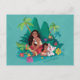 In this delightful scene from the animated world of Moana, we see Moana sitting on the lush, tropical shores of her island alongside her adorable younger sister. The two share a serene moment surrounded by vibrant flora, the loyal pig Pua, and the quirky, colorful rooster Heihei. This heartwarming image encapsulates the themes of family and friendship, set against the backdrop of their rich island culture and the deep, inviting jungle that defines their home.