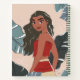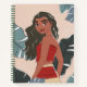 A beautiful illustrated moment with Moana looking back through the tropical leaves.