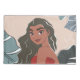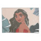 A beautiful illustrated moment with Moana looking back through the tropical leaves.