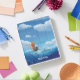 I was super excited when I got my cover in. It is attached by a magnet across the edge. I don’t think it will be very protective but it is very cute. I’m going to keep my iPad in a sleeve and use this face cover while I have it out. It folds to create a tilt for better viewing and to keep the iPad at a slight angle for typing. The colors are bright and it is fun. I’ve really enjoyed it. The personalization looks like amazing. It is the same color as the picture and is the same brightness. Well done! Very nice.