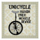 Unicycle, hands free mobile device in rough text with an image of a unicycle is a humorous cycling design playing on the double meaning of the term, hands free mobile device.