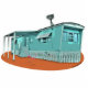 This mobile home/trailer cutout comes complete with plastic pink flamingoes in the yard!