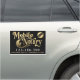 Modern, elegant Mobile Notary gold & black car magnet. Design features gold typography script ''mobile notary'' in handwritten lettering, feather logo, phone number and details on a black background.
