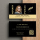 Elegant typography gold black feather logo notary public certified loan signing agent business card with custom photo and QR code to your website, price list, or social media link.