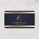 Stylish gold and navy blue mobile notary business card has a gold gradient quill on a navy subtle striped background with gold bars. Add your notary business details and the url for the QR code on the back. This card gives you an impressive look for your business.