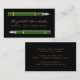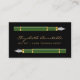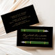This elegant modern notary business card features a pair of green vintage fountain pen illustrations. Personalize it with your name in gold-colored handwriting-style script on a black background, and add additional contact and commission information on the reverse.