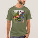 My 11 yo wore adult XL (5’7” 165#). The 8yo is small framed. She wore adult small and tied it in the back. Grandma wore adult large with long sleeve shirt underneath. Tall girl adult medium. Dark haired male adult large. Good quality dark Heather gray, Gildan brand shirt. -it was next up from basic choice and cost about $20 per shirt. Not too thick or thin. Washed and dried well, no major shrinkage. Not see-through. Can wear a bra under it fine. Screen print is just as shown and well done, front and back.