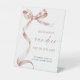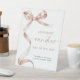 Mocha Bow "How Many Candies Are In The Jar?" Pedestal Sign – A sweet and playful baby shower game sign featuring an elegant beige bow design. Perfect for engaging guests in a fun guessing game, this pedestal sign adds a touch of charm and sophistication to your baby shower decor.