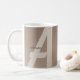 Minimalist modern mocha brown mug with custom oversized monogram letter and personalized name.