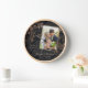 Mocha Brown Floral Personalized Photo Template Clock