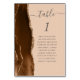 The left-hand edge of this elegant modern wedding table number card features a mocha brown watercolor agate border trimmed with faux gold glitter. The word "table" appears in charcoal gray handwriting script on a tan background. Add the names of your guests who are assigned to each table.