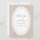 Elegant wedding thank you card featuring mocha brown French stripes and a delicate lace doily oval frame in a timeless neutral ivory and mocha palette. A refined, minimalist design perfect for classic, vintage, and neutral wedding stationery suites.