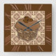 Mocha / Coffee Frosted Cupcake, Lace Background Square Wall Clock