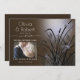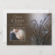 Rustic Nature Photo Save the Date - Your photo with this warm mocha brown theme, a soft glow behind a pretty display of cattails and grasses with sparkly dragonflies glistening in the glow - the back is a coordinating color easy to customize template - original artwork © by WhimsicalArtwork™ for theBarefootBride ™. This is part of a complete wedding stationery suite, as well as Baby Shower, Birthday and Christening Invitations. For question or assistance please contact designer indy.designer@yahoo.com.