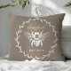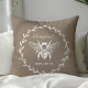 Mocha Honey Bee Laurel Honeycomb Monogram Throw Pillow