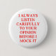 The button was just as expected. My mother's smile was captured so beautifully. The size was just right and the colors we chose were bright. The print was nice and clear. A person ordering should just make sure the wording is lined up in the center before submitting
